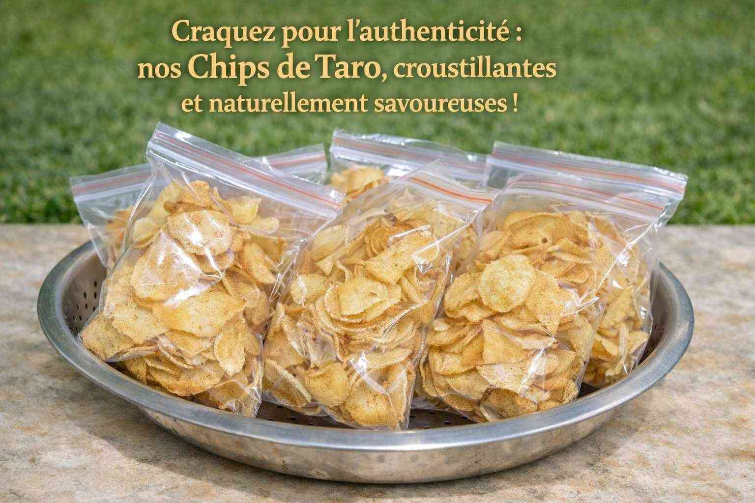 Nous vouchips de taro, une alternative saine et savoureuse aux chips classiques. Fabriquées à partir de taro soigneusement sélectionné, elles sont finement tranchées et croustillantes à souhait. Saveur : Goût doux et légèrement sucré, avec une texture très croustillante. Un plaisir naturel qui se déguste à tout moment. Riches en fibres, favorisent une bonne digestion Idéales pour l’apéritif, les pauses gourmandes ou pour accompagner vos repas. 📞 Contact / Commande :+243970065603