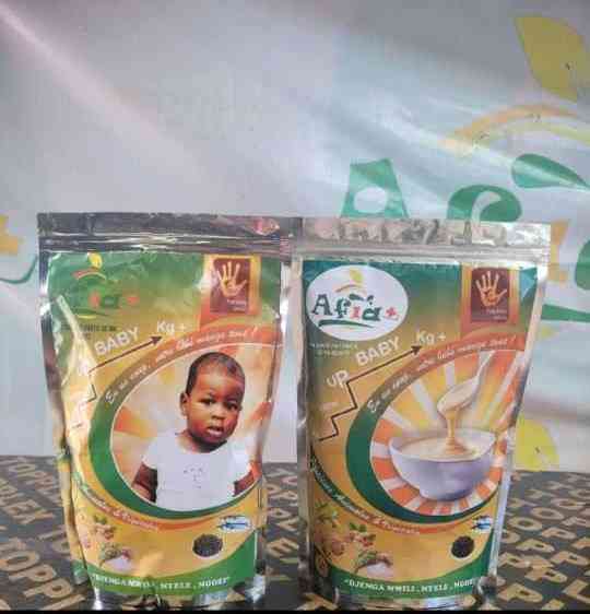 Afiaplus est une farine de boullie melanger a base des produits agricoles bio riche en proteine et cela est fait graduellement par des nutritionistes pour un enfant à partir de 9mois en paquet de 900g Pour plus de precision veillez nous contacter au 084506259